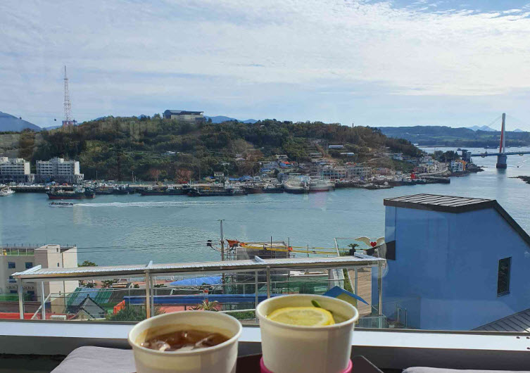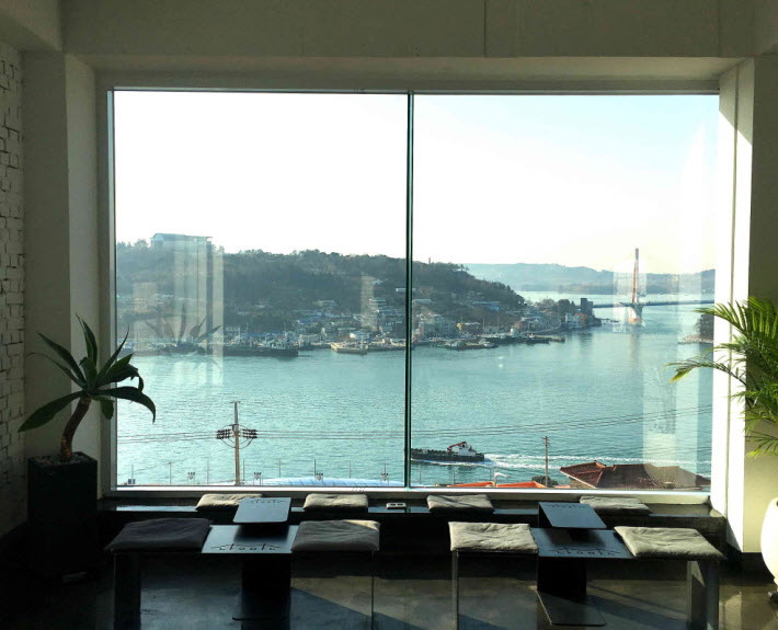 7. 커피나 음료메뉴도 나쁘진 않았으나 압권은 카페에서 보이는 뷰였습니다. 여수바다와 두개의 다리가 보이는 경관이 너무 아름다워 한없이 보게됩니다. 카페가 도로의 코너쪽에 위치했어서 여수 시내의 모습을 제일 잘 볼 수 있어요. 가격대는 여타 카페와 비슷한듯하고 맛도 괜찮았어요. 경관은 최고인 듯합니다.