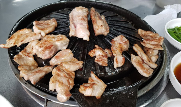 차례가 되어 들어가보니 테이블당 직원 한 분이 붙어 주문과 조리를 모두 담당해주십니다. 고기를 구워주는 시스템이 편하기도 했지만 먹는 속도를 조절할 수 없어 개인적으로는 불편하였습니다. 고기가 구워지는 족족 먹기만 하면 되는데 밑반찬인 갓김치나 초고추, 젓갈 등과 먹기엔 많이 짠 편이었습니다.