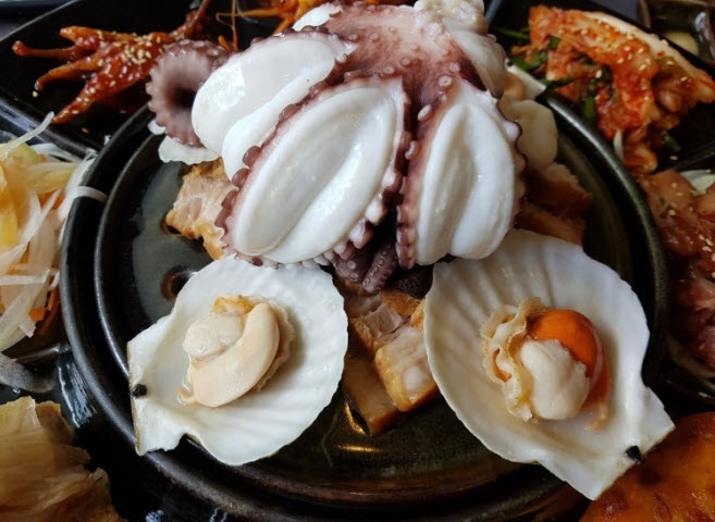 “이 집은 영양만점의 문어와 보쌈의 콜라보를 이뤄낸 요리로 해산물과 밑반찬이 좋다고 한다. 특히, 꽃처럼 펼쳐진 문어를 한 마리 통째로 넣고, 보쌈과 다양한 밑반찬이 대단한 집이라고 한다.”