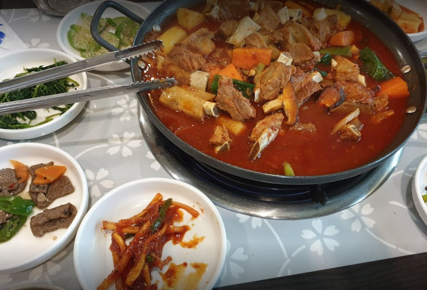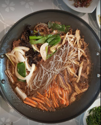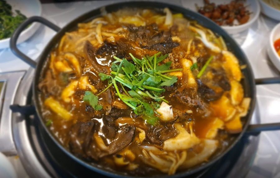그리고 쌤**님은 가마솥 능이오리백숙 맛집이라고 소개된 이 집에서 “한국적인 인테리어와 넓은 마당 말고는 음식....은...그냥그냥그래요 하지만 운치있고 주차가 가능한 식당을 찾으신다면 추천합니다(사진은 능이버섯 전골 소고기와 능이버섯 맵지않은 빨간국물 공기밥 별도)”라는 말을 하면서 아쉬운 말을 합니다.
