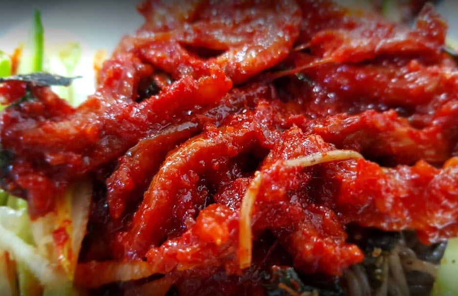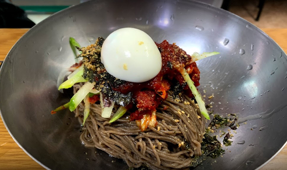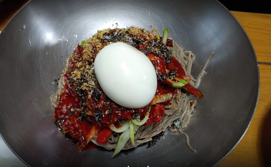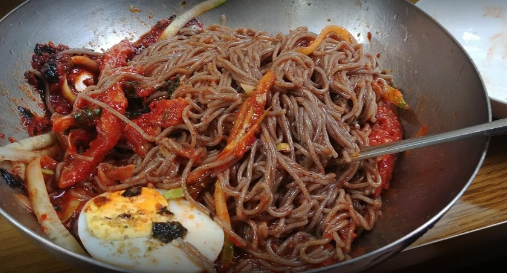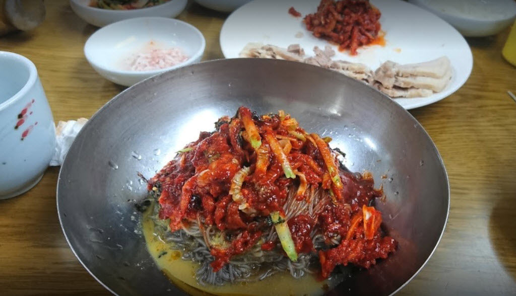 “이 막국수 집은 스스로 말하길 ‘양양에서 3대째 이어온 막국수, 냉면 전문점입니다. 메밀로 만든 면에 새콤달콤한 가자미식해를 얹어 내오는 비빔막국수가 인기인데요. 김치와 가자미식해와 먹는 수육도 추천 메뉴입니다’라고 말할 정도로 제대로 된 곳이라는 평이 많은 곳입니다.”