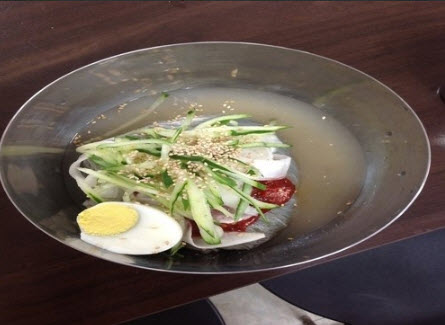 “이 집은 13년 전통의 함흥냉면집으로 직접 100% 수제로 뽑은 면과 육수를 사용해서 맛을 내는 냉면집이라고 한다. 특히, 가격도 저렴해서 사람들이 더욱 많이 찾는 집으로 면발의 탄력과 육수의 깊이가 다르다고 말하는 분들이 많은 식당이다.”
