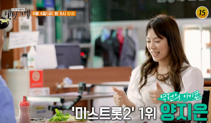“이번 백반기행에서는 양지은 씨와 함께 나들이를 떠났고, 요일별로 수육과 족발 등이 나오는 식당을 지나 하동 사람들은 꼭 먹어야 된다는 고매기라는 능성어 구이가 나오는 생선구이 정식까지 먹으면서 트롯 요정으로 불리는 최연소 식객까지 방문해서 더욱 재미있는 방송이었다고 한다.”