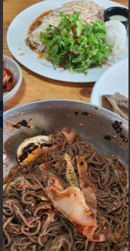 더군다나 더욱 좋았다는 생***님은 “그냥 음식을 만들면 기본 이상의 수준이 되는분들이 계신데 여기가 그래요 함박스테이크 먹으면 왜 막국수 간판을 달았는지 궁금하고 돈까스 먹어도 그 생각...막국수는 그냥 메인이니 넘 맛있어요. 자세하게는 비빔은 인위적인 장맛이 아니라서 좋고 물막도 깔끔합니다. 돈까스는 일식 아닌 분식점 스타일인데 푸짐하고 묘한 매력이 있습니다. 함박은 모양도 좋고 맛도 좋고 수준도 있어요. 개인적으로 식물성 마가린 냄새만 없으면 백점이겠다는..”라는 말을 하며 좋았던 점과 아쉬운 점을 이야기 합니다.