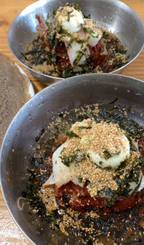 “제주에서도 남원읍은 특히 귤림추색(橘林秋色), 귤이 익어가는 가을 풍경이 아름다운 감귤의 명산지다. 그래서인지 동네 집마다 어김없이 아담하고 예쁜 귤 창고 하나씩을 끼고 있다. 그 골목을 걷다가 예쁜 오솔길로 접어드니, 막다른 끝에 예쁘장한 집 하나가 있다. 귀촌 11년 차 부부가 창틀 하나부터 지붕 한 장까지 직접 집을 짓고 운영하는 식당이다. 귀촌을 결심한 계기는 남편의 건강 때문. 일시적인 마비가 올 정도로 두통이 심했는데, 제주에 내려오니 거짓말같이 나았단다. 매일 아침, 하루치의 메밀 반죽과 흑돼지 돈가스를 성실하게 준비해 딱 한 끼, 점심 장사만 한다. 소박해서 더 맛있는 부부의 마음이 담긴 막국수와 돈가스를 맛본다.”
