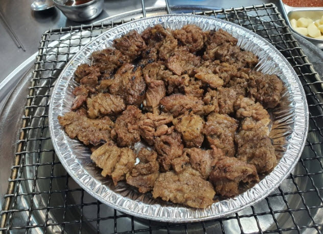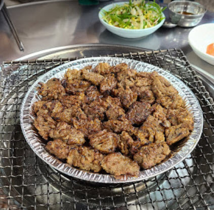 또한, sang******님의 말로는 “소갈비를 아주 저렴하게 맛있게 먹을 수 있는 집이다. 당연히 등급이나 부위도 조금 떨어질 테지만, 여기 동네분들 맛있게 고기 먹으며 소주 마시기에 이만한 곳이 없을 것 같다. 소갈비를 생과 양념으로 고를 수 있고 우리는 처음 갔기에 둘 다 먹어봤다. 불은 번개탄 연탄불이고 이모님께서 가게 밖에서 연탄불에 초벌을 해서 갖다주신다. 불판은 생갈비는 팬, 양념갈비는 석쇠로 나오는데 둘 다 시키는 경우는 중간에 판을 갈지 않고 쭉 팬으로 굽는 방식이었다. 결론부터 말하면 양념갈비가 훨씬 맛있었다. 생갈비는 소 육향을 느끼기는 더 좋았지만 이 가격대 소고기에서 어차피 소 맛 제대로 즐기기는 힘드니 달달하고 맛있는 간장양념이 더 직관적으로 맛있게 다가왔다. 거기에 양념이 자극적이거나 과하지 않고 딱있었다. 이 가격으로 이 정도 고기 먹을 수 있으면 집 근처였으면 정말 자주 갔을 것 같다.