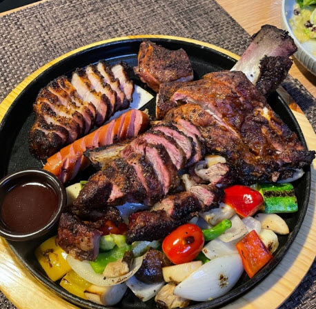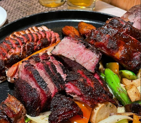 | “미국산 프리미엄 비프립과 통삼겹,스페어립을 3일 숙성후 고급 향신료 럽을 뿌려 오랜시간 참나무와 사과나무 장작으로 훈연하여 부드럽고 맛있는 미국느낌이 물씬풍기는 한국형 텍사스바베큐를 제공합니다.” |