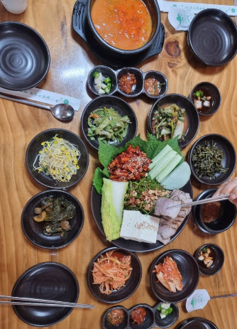 끝을 이 식당이 정말 좋았다면서 ab****님은 “짜글이와 순두부 전골을 주문. 나오는 기본찬은 강된장과 함께 여러 나물들이 나오는데 양념을 맛깔나게 잘하셔서 단번에 맛집임을 직감함. 보리밥을 제공하고 테이블에 고추장과 참기름이 있어서 나물들을 넣어 셀프 비빔밥을 만들어 먹을 수 있음. 짜글이는 대전식 두부두루치기와 비슷한데 간이 조금 센편이나 얼큰하게 비벼먹을 수 있음. 전골은 새우젓으로 간을 잡아 깔끔하고 깊은 맛. 매일 직접 만드신다는 두부는 신선하고 부드러워 식감이 좋음. 상기메인에 고기류는 들어가있지 않아 아쉬울수 있으면서도 깔끔하고 정갈한 맛에 만족하면서 나올 수 있는 곳.”이라 말하면서 극찬을 하네요.