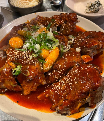 | “안녕하세요 저희는 목동사거리 먹자골목에 위치한 짚불뼈구이 매운뼈찜 전문점 뼈다구짚입니다.” |