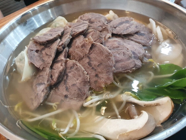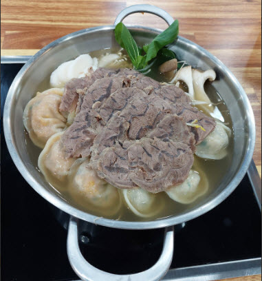 먼저 이 식당에서 육개장 만두전골의 맛을 본 뽀***님이 말하길 “육개장만두전골 궁금했는데 고기고명도 듬뿍올라가 있고 괜찮네요... 전골만두 선택가능하니 개인적으로 김치만두보다는 고기만두 추천이요... 이날 돼지수육은 살고기부분이 많아서 조금 아쉬웠지만 막국수와 함께라면 맛있게 먹을 수 있습니다. ㅎㅎ”이라 말하면서 최고의 맛이라고 극찬을 하네요.