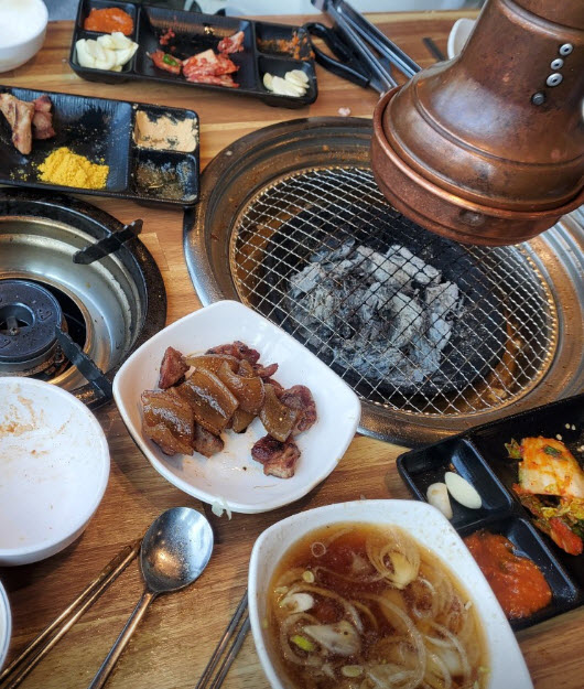 또한, 무한리필인데 좋다면서 마뇽****님이 “무한리필치고 고기들도 두껍고 진짜 맛있어요 된장찌개도 맛있고 사이드 음식들도 맛있어요. 고기 종류에 따라 불판도 다르고 어울리는 양념들이 다 있어서 좋네요.”라는 말을 합니다.