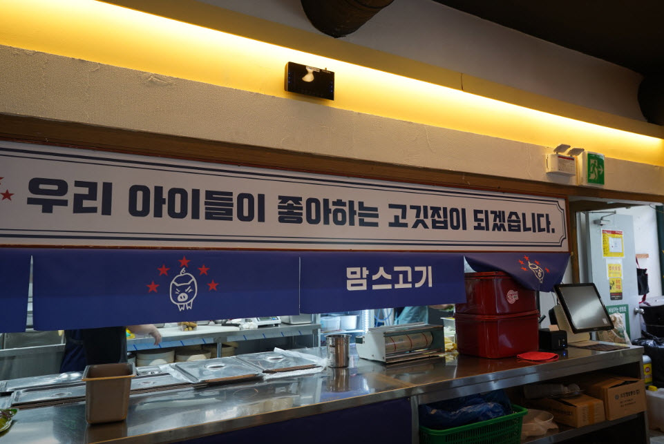 | “좋은 재료 좋은 생각 우리 동네 맘편한 고깃집 맛있는 고깃집이 되겠습니다. 우리 아이들이 좋아하는 고깃집이 되겠습니다. 최선을 다하겠습니다! 프리미엄 무한리필 맘스고기 입니다.” |
