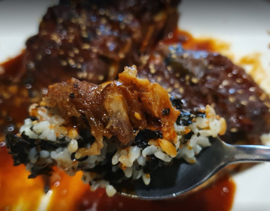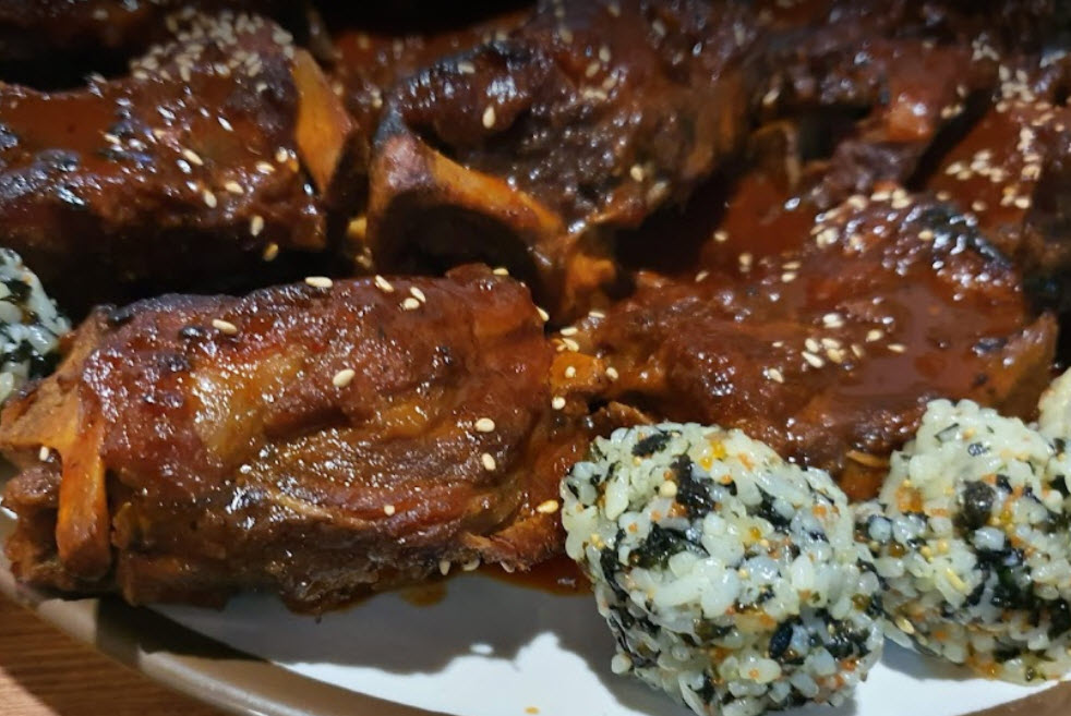 역시나 딩요***님도 “4인 기준이고 주먹밥 추가함. 인당 1.3은 생각하면 될 듯함. 뼈구이 기본 2인이상 주문이고 1인분에 11500원임. 맛은 있어요. 맵기 조절해서 2단계로 먹었는데도 매우니까 맵찔이들은 순한맛으로 꼭 시키시길. 담엔 순한맛 시키기로.”라는 말을 하네요.