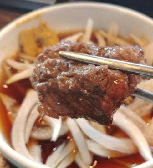 역시나 깹**님이 말하기에도 “월광수변공원 맛집으로 원래 유명했던 곳인데 드디어 방문을 했어요! 평일 낮임에도 불구하고 단체 손님과 예약 손님들이 정말 많아 깜짝 놀랐는데 맛을 보는 순간 수긍이 되네요. 일단 고기가 굉장히 질이 좋으면서 부드러워요! 마늘이 많이 올라가 있어 마늘 맛이 많이 나지 않을까 했는데 전혀 방해되지 않고 식감과 향이 은은해서 좋았어요. 국밥 드시는 분들도 많아 국밥과 육국수를 주문했데, 국물이 정말 진하고 안에 든 한우는 사르륵 녹을 정도로 부드러워요! 남녀노소 누구나 좋아할 한우 맛집으로 강추해요!”라고 말을 하네요.