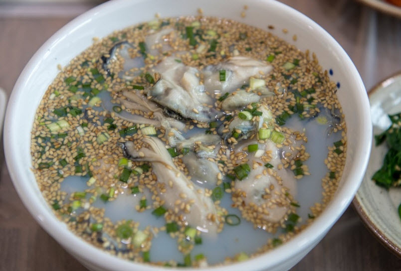 “낙지죽도 좋지만 피굴이라는 낯선 음식에서 엄마의 손맛을 느끼고간 집! 이 피굴은 굴껍질을 오래 끓여서 국물이 사골처럼 뽀얗게 나오는데, 이 국물에 생굴을 넣고 끓인 맑은 국물의 요리다! 굴을 좋아하는 입장으로써 한입만 먹어도 진한 굴 향에 전날 술까지 먹었다면 해장까지 되는 전천후 맛의 보증수표!”
