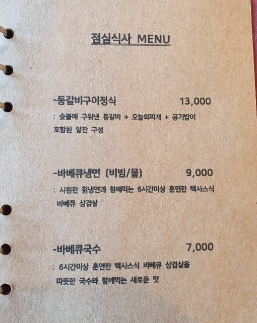 “숙성된 고기가 기름기도 빠진것이 담백하고 맛있어요. 찍어먹는 소스도 여러가지 준비되어있고 다 좋아요 ㅎ 바베큐국수도 담백하니 배불러도 자꾸 들어가요 ㅎㅎ 만점입니다. 담엔 목살 꼬옥 먹을거예요. 이번엔 등갈비 먹었거든요! 참 인테리어는 레스토랑 같은분위기라 깔끔합니다. 사장님도 젊으셔서 그런지 최선을 다하시는 모습 좋았어요.”