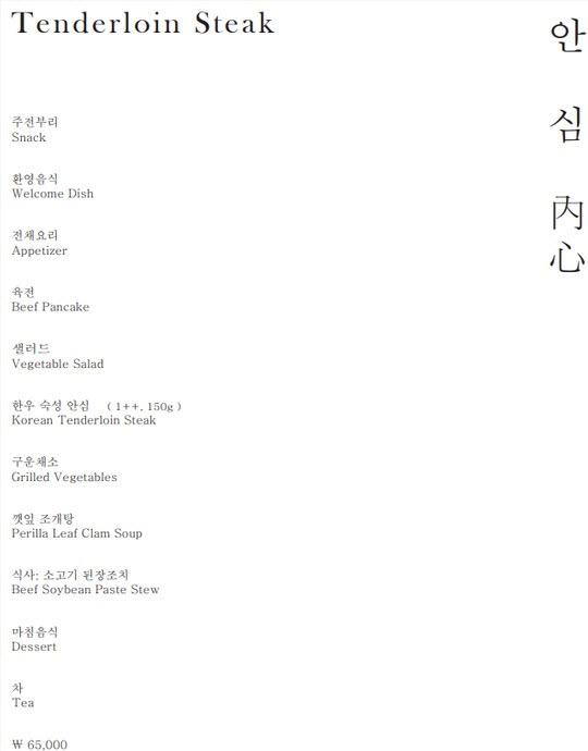 숙성 안심 정찬 한우 1++, 150g ----- 65,000원