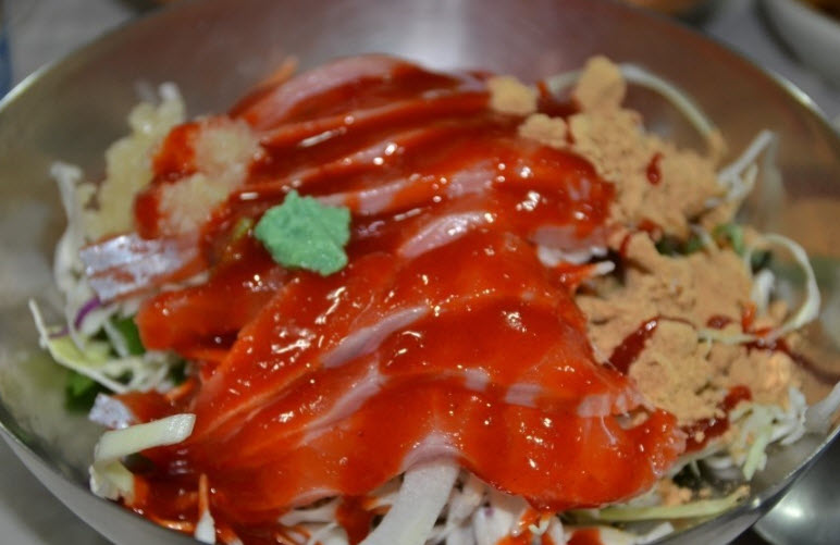 생생정보 송어회 맛집인 송어의 집은 송어회와 튀김 구이를 시키면 특이하게도 송어 껍질 튀김도 준다고 합니다. 별다른 맛과 향은 없는데 그 식감이 정말 재미있다고 합니다. 겉은 바삭하고 속은 늘렁거리는 정석과도 같은 식감이라고 합니다. 그리고 송어회는 회로 주는대로 먹어도 되지만 야채와 콩가루 등을 섞어서 회무침으로 먹어도 별미라고 합니다. 신기한 것은 송어회는 초고추장이 은근 잘 어울려서 초고추장과 먹는 것을 추천한다고 합니다.