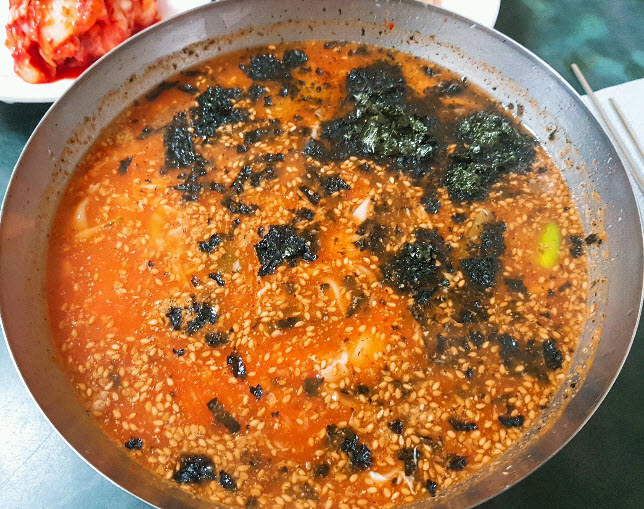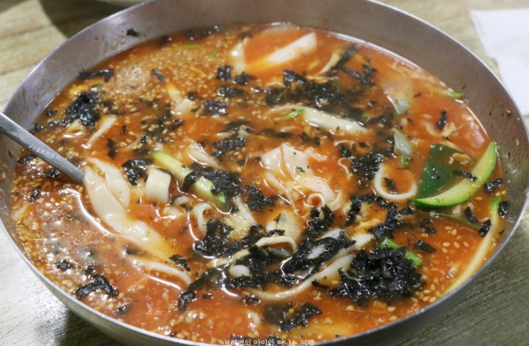 “전 매운거 1도 못 먹는 초딩 입맛이라 장칼국수 먹었는데 맛있어요. 존맛까진 아닌데 그래도 맛있음. 면 굵기가 일정하지 않아서 쫀득하고 식감이 좋음 약간매운맛? 시킨거 한입 먹어봤는데 너무 너무 너무 맵더라구요. 약간 매운게 아닌듯.. 개인적으로 매운 것 보다는 역시 대표메뉴인 장칼국수를 추천 그런데 서비스 정말 별로..웨이팅 10분정도 하고 먹어서 만족도 높았는데, 막 한시간..? 그런건 오바인듯..”