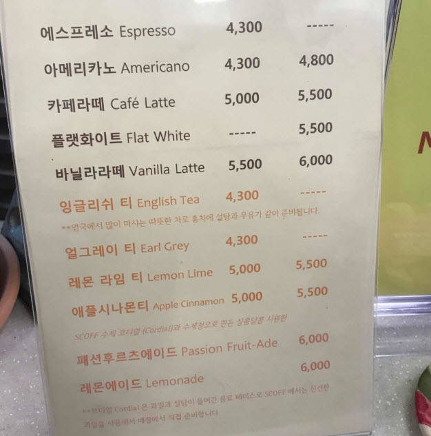 ◆ 가격 및 메뉴
