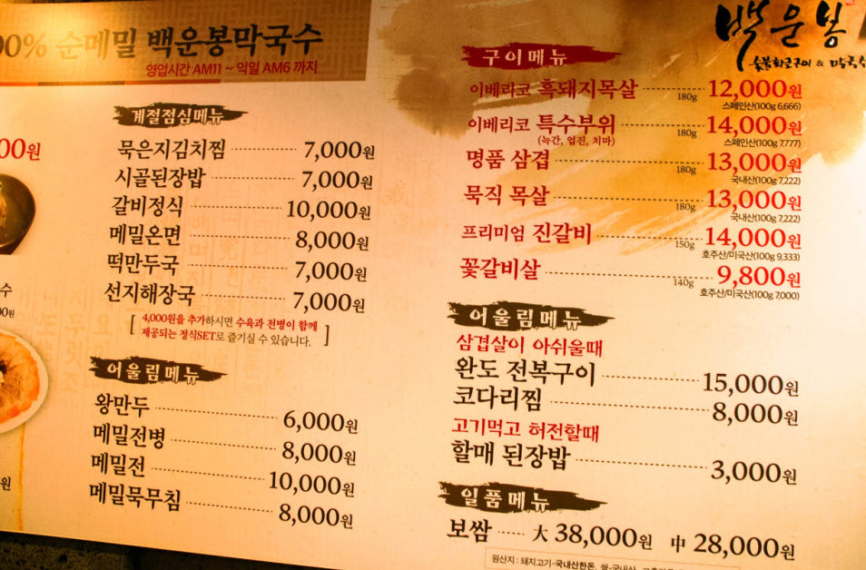 ◆ 가격 및 메뉴