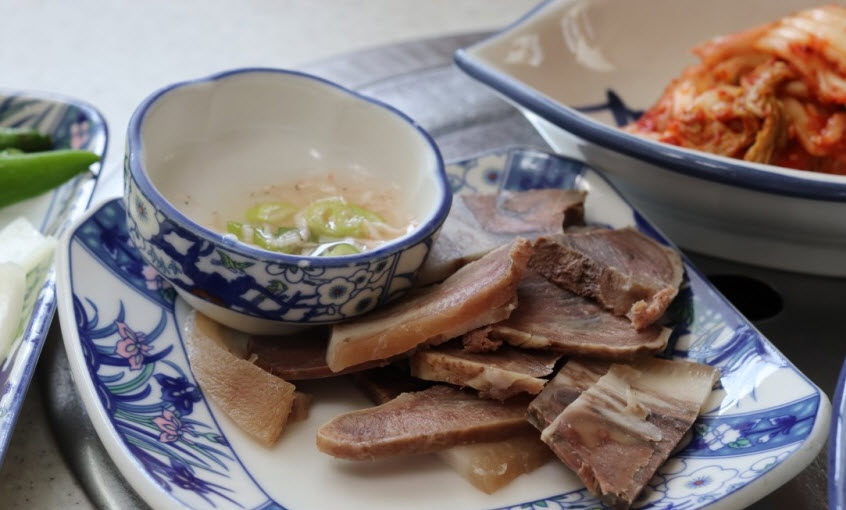 끝으로 이곳에서는 가끔 서비스를 주는데, 머릿고기 수육 같은 것을 주는데 그 맛이 상당하다고 합니다. 일단 잘 삶을 고기라는 것은 믿어 의심치 않고, 너무 삶아서 퍼지거나 너무 덜 삶아서 질기거나 하는 것 없이 쫄깃한 맛을 낸다고 합니다. 특히, 머릿고기 수육은 참깨랑 부추에 섞여서 나오는데 그 맛이 또 일품이고, 새우젓을 올려서 먹으면 둘이 먹다 둘이 죽어도 모르는 맛을 내준다고 합니다.