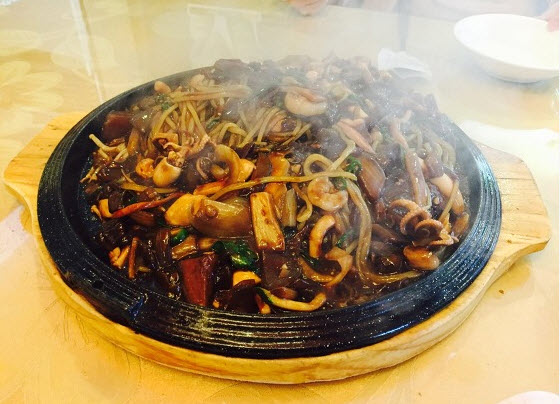 이 집의 해물철판짜장면은 해물이 들어있고 매콤한 짜장으로 맛이 좋다고 합니다.