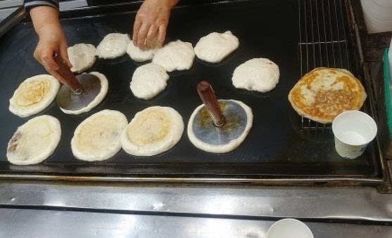 이런 호떡 달인들은 많이 나왔지만 예전 목포에 나온 달인이 생각나고, 호떡 자체로만 봐서는 설탕과 같은 속을 둥글고 흰 떡이 둘러싼 형태로, 겨울에 먹는 대표적인 음식으로 보통 계피맛이 나는 흑설탕을 넣지만 요즘엔 야채를 넣어 만들기도 하고, 흑설탕이 흘러내리는 것을 막기 위해 밀가루를 첨가하거나 땅콩 등의 견과류를 갈아 넣어 점성을 높이기도 한다고 합니다. 목포 달인은 무화과를 넣었는데 지금 달인은 뭘 넣었는지 궁금합니다.