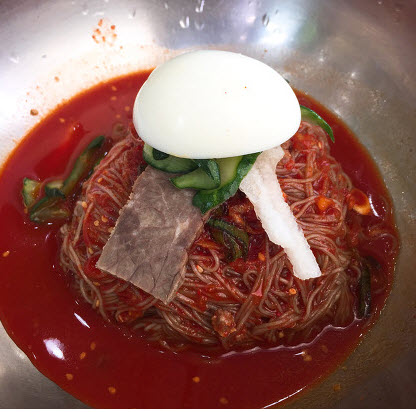 그러면서 “ 물냉은 육수가 깔끔하거나 진한느낌도 아니고, 그냥 이도저도 아닌 편의점 냉면 수준? 비냉은 어느 집이나 맛있다. 비냉은 그 특유의 자극적인 소스 덕분에 달달매콤 맛있음. 갈비찜과 먹으면 그 자극적인 맛이 더욱 강해져서 먹다보면 좀 지치는 맛~”의 집이라고 말합니다.