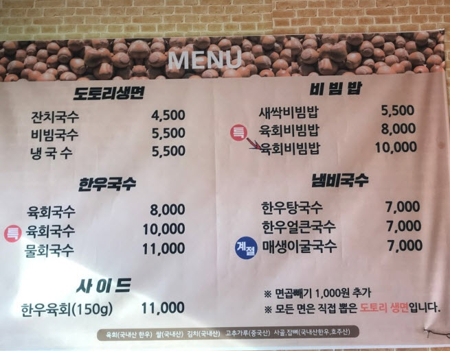 한우육회국수 ----- 8,000원