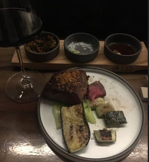 “찰리 파머에서 총괄셰프로 근무했던 김세경 셰프가 오픈한 드라이에이징 스테이크 전문 레스토랑입니다. 20석의 바테이블과 최대 7명까지 수용 가능한 2개의 프라이빗 룸으로 구성되었으며 직접 제작한 숙성고에서 최소 21일간 숙성시킨 이베리코, 텐더로인 등 다채로운 부위의 드라이에이징 스테이크를 맛볼 수 있습니다. 사케, 와인, 싱글 몰트 위스키 등 스테이크와 어울릴 만한 주류도 다양하게 구비되어있습니다. 휴135는 원하는 크기를 골라 주문할 수 있어 혼밥을 즐기는 사람부터 프라이빗한 회식을 원하는 이들까지 식성에 맞게 선택할 수 있습니다. 위치는 한남동 다츠와 같은 건물이고, 발렛 가능합니다.”